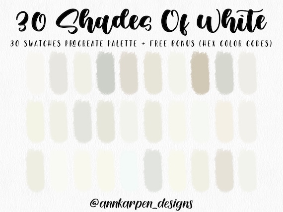 30 Shades Of White Procreate Palette 30 Hex Color Codes Instant Digital Download Ipad Pro Art Illustration Soft Nude Color Swatches Download Now Etsy